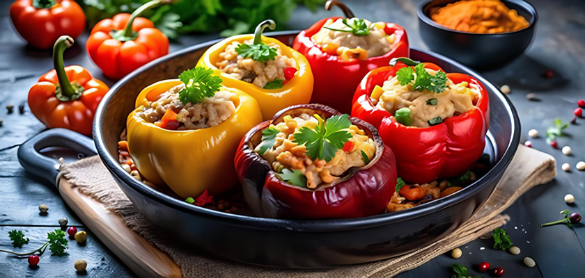 Ajoutez la sauce. Placez les chapeaux des poivrons et des tomates réservés sur les légumes, comme un couvercle. Répartissez 250 ml de tomates concassées sur les légumes, puis ajoutez environ 125 ml d'eau. Saupoudrez de 2 gousses d'ail hachées, 1 cuillère à café d'origan séché et une bonne pincée de sel et de poivre. Arrosez d'un filet d'huile d'olive. Cuisson au four. Couvrez hermétiquement le plat de papier aluminium et enfournez à mi-hauteur pendant 1 heure. Retirez le papier aluminium et poursuivez la cuisson jusqu'à ce que la farce de riz soit bien cuite et que les légumes soient très tendres et légèrement grillés, environ 30 minutes de plus. Que servir avec des légumes farcis à la grecque… Cette recette de gemista végétarienne peut facilement rassasier 6 personnes en plat principal, surtout accompagnée d'une salade grecque fraîche (horiatiki) en entrée. Je l'apprécie en accompagnement de protéines à la grecque. Enfournez les légumes farcis avec du poulet souvlaki....